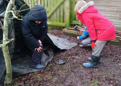 Forest School encourages curiosity, teamwork, and resilience. Through activities such as den building, exploring natural materials, imaginative play, and learning how to manage risks safely, the children develop confidence, independence, and physical skills. Working together outdoors also helps strengthen friendships, communication, and problem-solving skills and a deep connection to the environment while improving mental well-being, focus, and social skills, making learning holistic and fun.