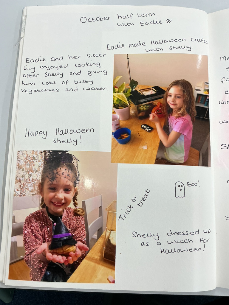 - Responsibility and independence – children learn to look after another living being and understand that Shelly depends on them.
