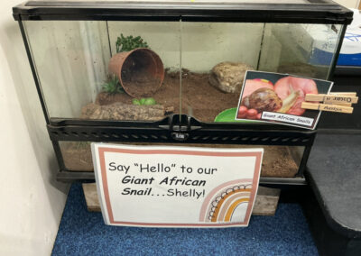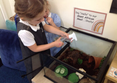 Each week, as part of our classroom routine, the children choose their classroom jobs. One of the most loved (and eagerly awaited!) roles is taking care of Shelly. This important job involves making sure Shelly always has fresh food and that his enclosure is kept damp with a few gentle sprays of water. The children take this responsibility very seriously and show such care, patience, and kindness while looking after him.