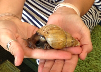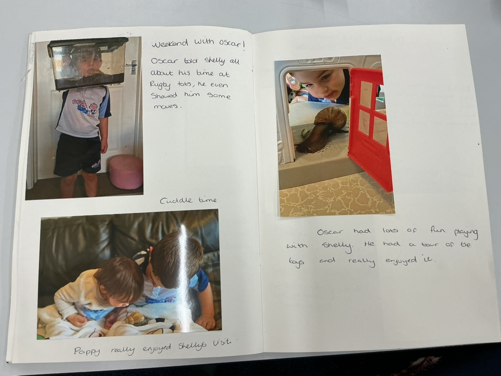 Their love for Shelly quickly grew so much that they asked if he could go on “mini weekend breaks” with them! Over the year, the children have had the opportunity to take Shelly home for weekends and school holidays, giving him a whole range of exciting experiences. Shelly has certainly lived a busy life — he has met other Giant African snails, enjoyed trips to Alton Towers, attended tennis club, sampled delicious homemade snacks, and even had a very special meeting with Santa!